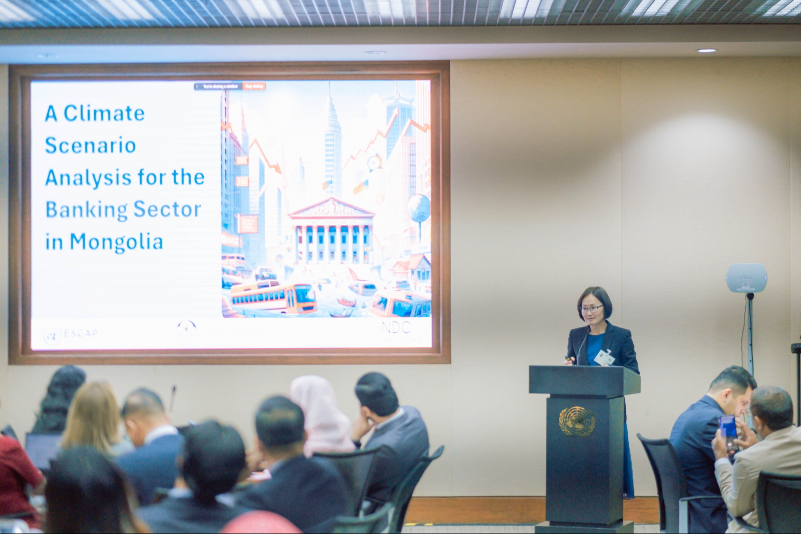 Монголбанк Нэгдсэн Үндэстний Байгууллагын Бангкок дахь хурлын төвд 2025 оны 9-р сарын 10-11-нд болсон “Ази, Номхон далайн бүсийн NDC Clinic” арга хэмжээнд оролцож, банкны салбарын уур амьсгалын сценарь шинжилгээний туршлагаа хуваалцлаа. Энэхүү арга хэмжээг NDC Partnership, GIZ, UNEP, UNDP болон UNESCAP, НҮБ-ын Уур амьсгалын өөрчлөлтийн суурь конвенцын нарийн бичгийн дарга нарын газартай хамтран зохион байгуулсан юм.