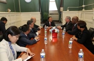 НҮБ-ын Ерөнхий Ассамблейн 71 дүгээр чуулганд оролцсон Монгол Улсын ЕрөнхийлөгчЦахиагийн Элбэгдорж энэ сарын 23-ны баасан гаригт Филадельфи хотод зочлон АНУ-ын Пенсилвани муж, Филадельфи хотын удирдлагуудтай уулзлаа. Ерөнхийлөгчийг Филадельфи хотын захиргааны байранд хүрэлцэн ирэхэд Пенсилвани мужийн Амбан захирагч Том Вулф, Филадельфи хотын дарга Жеймс Кенни болон албаны бусад хүмүүс албан ёсоор угтан авлаа.