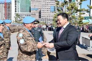 Монгол Улсын Зэвсэгт хүчнээс Өмнөд Судан Улс дахь НҮБ-ын мандаттай энхийг сахиулах ажиллагаанд үүрэг гүйцэтгэж буй Зэвсэгт хүчний мотобуудлагын батальон, судан Улсын Дарфур мужид үүрэг гүйцэтгэж буй Зэвсэгт хүчний мотобуудлагын ротын цэргийн багийн ээлж хүлээлцэх ажиллагааг зохион байгуулж төрийн дээд одон медаль гардууллаа.