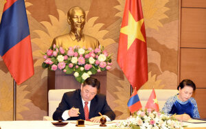 БНСВУ-ын Үндэсний ассамблейн дарга, хатагтай Нгуен Тхи Ким Нганы урилгаар Монгол Улсын Их Хурлын дарга М.Энхболдын тус улсад хийж буй айлчлалын үеэр хоёр парламентын тэргүүн нар албан ёсны хэлэлцээ хийж, Монгол Улсын Их Хурал, БНСВУ-ын Үндэсний ассамблей хоорондын хамтын ажиллагааны Санамж бичигт гарын үсэг зурав.