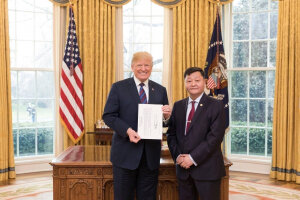 Монголоос АНУ-д суух Онц бөгөөд Бүрэн эрхт Элчин сайдаар томилогдсон Ёндонгийн Отгонбаяр гуравдугаар сарын 28-ны өдөр АНУ-ын Ерөнхийлөгч Дональд Трамптай уулзаж, итгэмжлэх жуух бичигээ өргөн барьжээ.